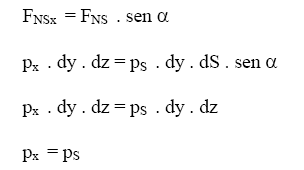 Ou seja, a pressão na direção x é igual a pressão que atua em uma direção qualquer, portanto como a pressão não depende da direção pode-se afirmar que é uma grandeza escalar.