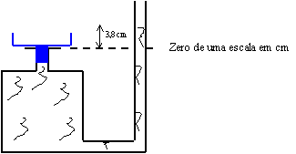 Sabendo-se que após preencher o recipiente de vidro com o fluido fornecido, se ter colocado o prato e o corpo em questão obteve-se a configuração a seguir, determine o peso e a massa do corpo.