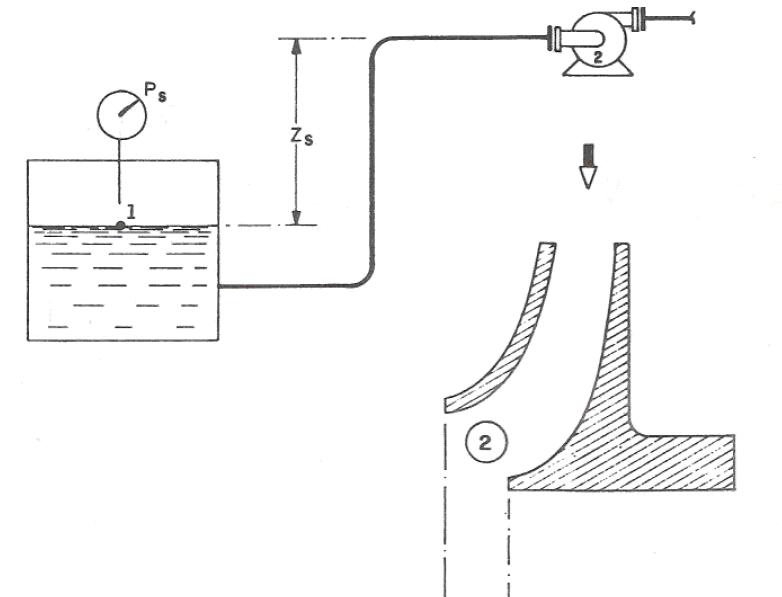 No caso particular das bombas centrífugas, a região de mínima pressão, crítica para efeito de análise de cavitação, é a entrada (olho) do impelidor (Fig. 10.3). Nesta região a pressão é mínima, pois o líquido ainda não recebeu nenhuma adição de energia por parte do impelidor e teve sua energia reduzida pelas perdas de carga na linha de sucção e entrada da bomba. Na hipótese de aparecimento de bolhas nesta região, o colapso se dará naquela onde a pressão for novamente superior à pressão de vapor, provavelmente no canal do impelidor ou, posteriormente, na entrada da voluta ou canal das pás difusoras, dependendo do tipo de bomba.