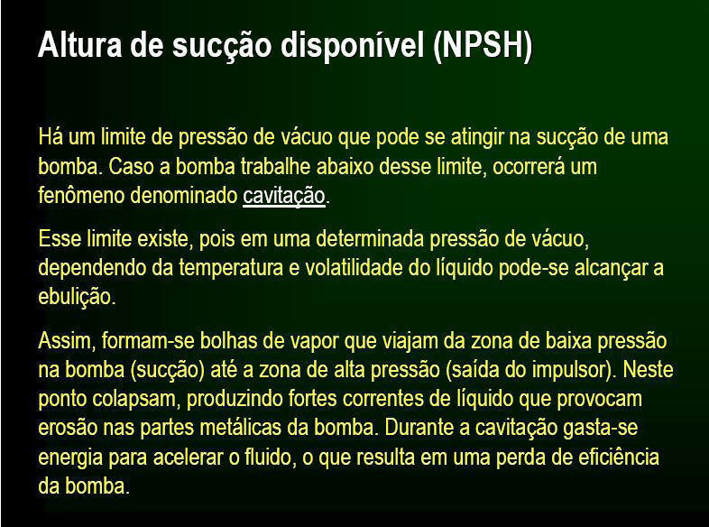 existe insuficiente NPSH disponível em relação ao NPSH requerido. Quando